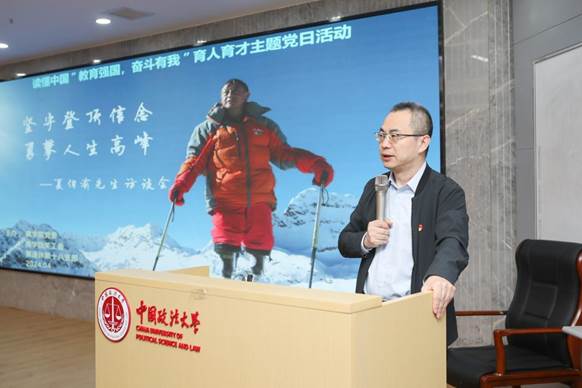 主持人王雁异老师致开场辞,向大家介绍今天的访谈嘉宾夏伯渝先生,在双下肢因严重冻伤而截肢的情况下,没有放弃攀登珠峰的梦想,以顽强的毅力用假肢进行登山的康复训炼,终于在2018年69岁高龄的时候,实现了登顶的梦想,成为无腿登顶珠峰第一人。王老师强调,此次活动不仅是一堂深刻的思政教育课,也是贯彻中央精神、落实教育强国规划纲要的重要举措。